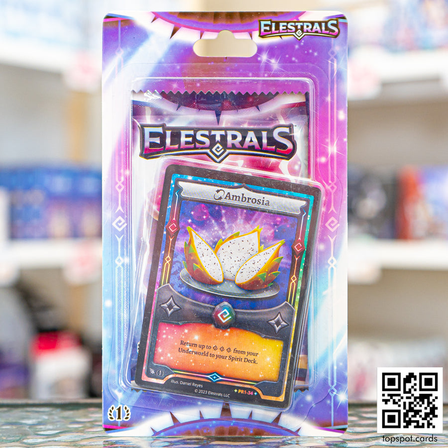 This product comes with a 1st Edition Base Set booster pack and the Stellar Promo card, Ambrosia! Each booster pack contains 10 cards.