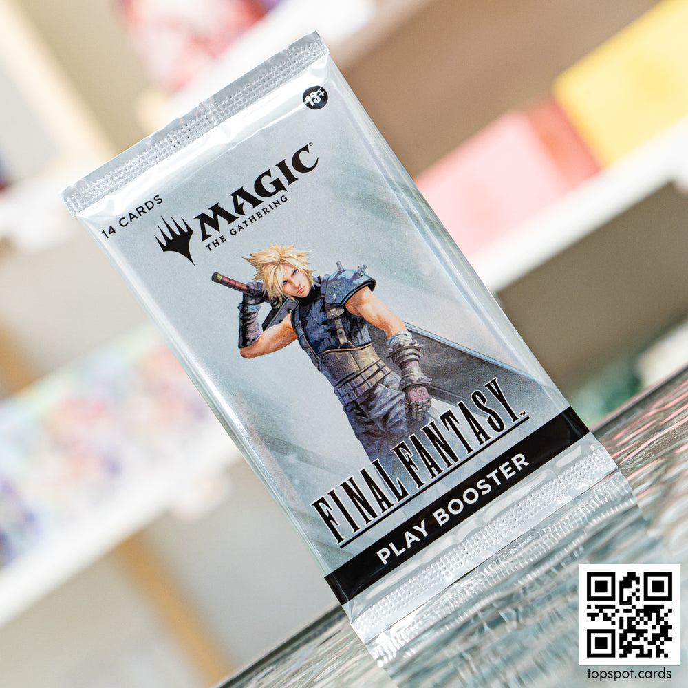 Enter battle in Magic: The Gathering with some of the most iconic characters, items, and moments from the sixteen core games in the legendary FINAL FANTASY series. Step into these unforgettable stories and give them a whole new spin! Perfect for both Limited play and opening packs just for fun, this Magic: The Gathering—FINAL FANTASY Play Booster contains 14 Magic: The Gathering cards and 1 Token/Ad card or Art card. (A regular Art card can be found in 30% of packs and a foil-stamped Signature Art card can be found in 5% of packs.) Every pack Includes 1–4 cards of rarity Rare or higher and 3–6 Uncommon, 6–9 Common, and 1 Land cards. One card of any rarity is Traditional Foil. The Land card is also Traditional Foil in 20% of boosters. This product does not contain a serialized card (available in English-language Collector Boosters only).